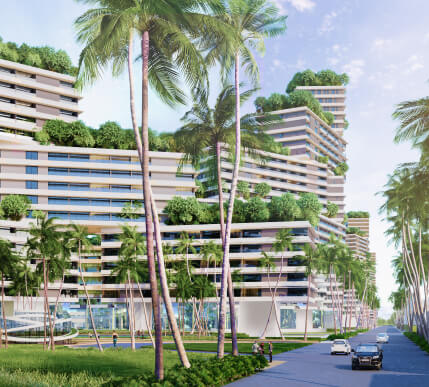 Toàn bộ khu căn hộ biển Wyndham Coast đều thiết kế rỗng với những vườn cây trên cao được xây dựng xen kẽ, biến những tòa nhà cao tầng thành những vườn treo độc đáo.